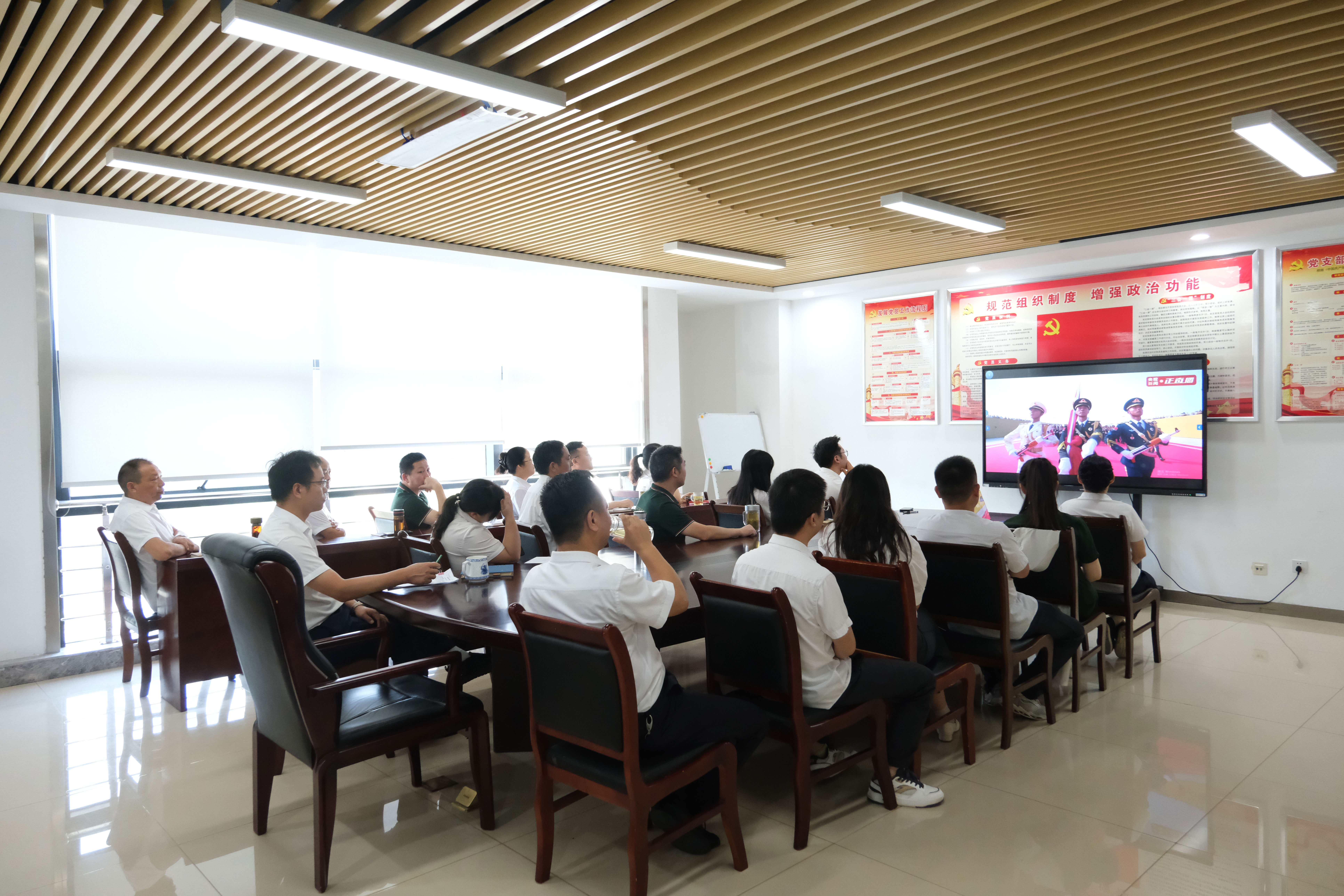 9月3日上午9时,霍斛科技公司党支部组织全体党员准时集中观看“纪念中国人民抗日战争暨世界反法西斯战争胜利80周年大会”直播,以实际行动弘扬爱国主义精神。